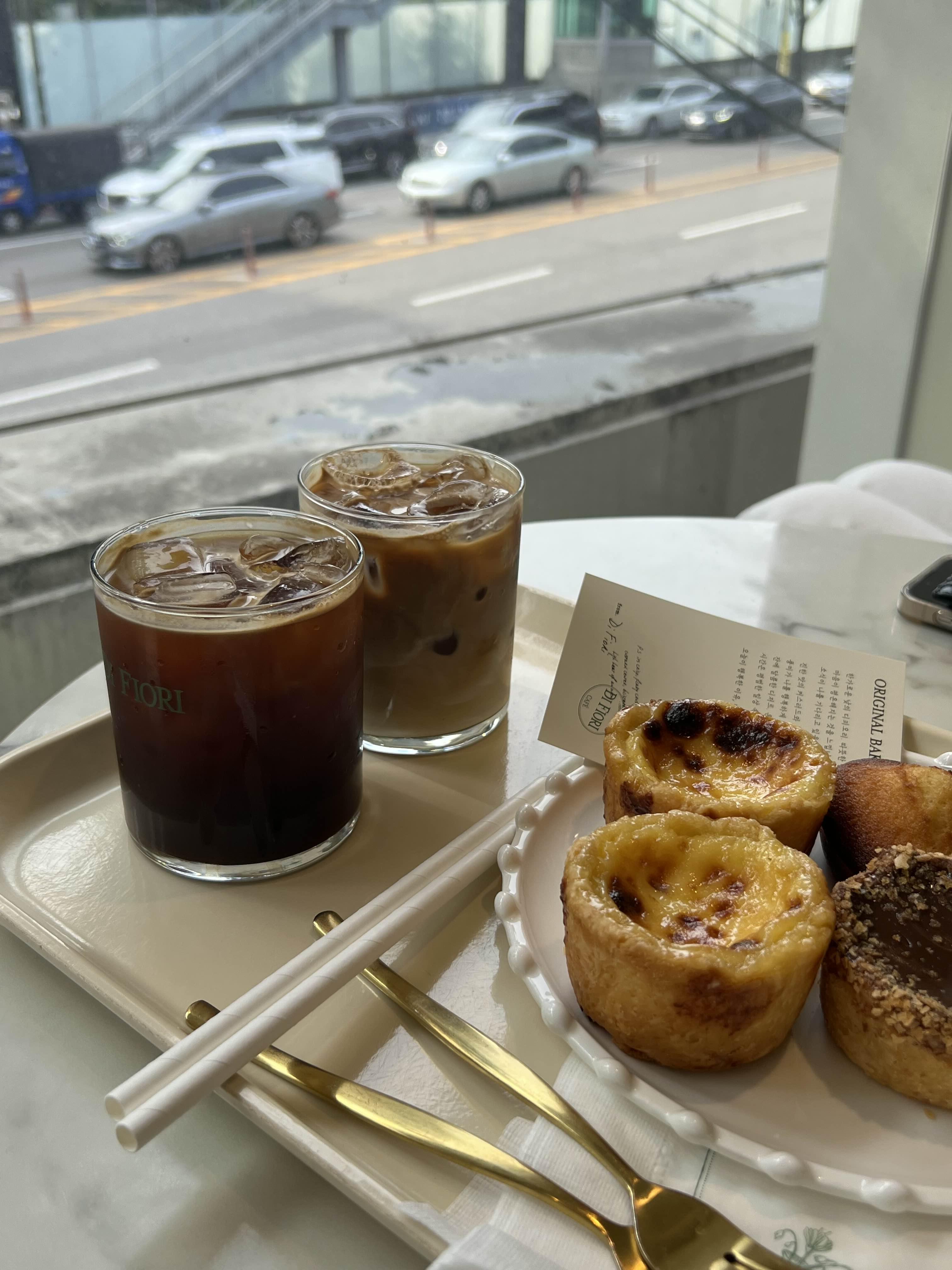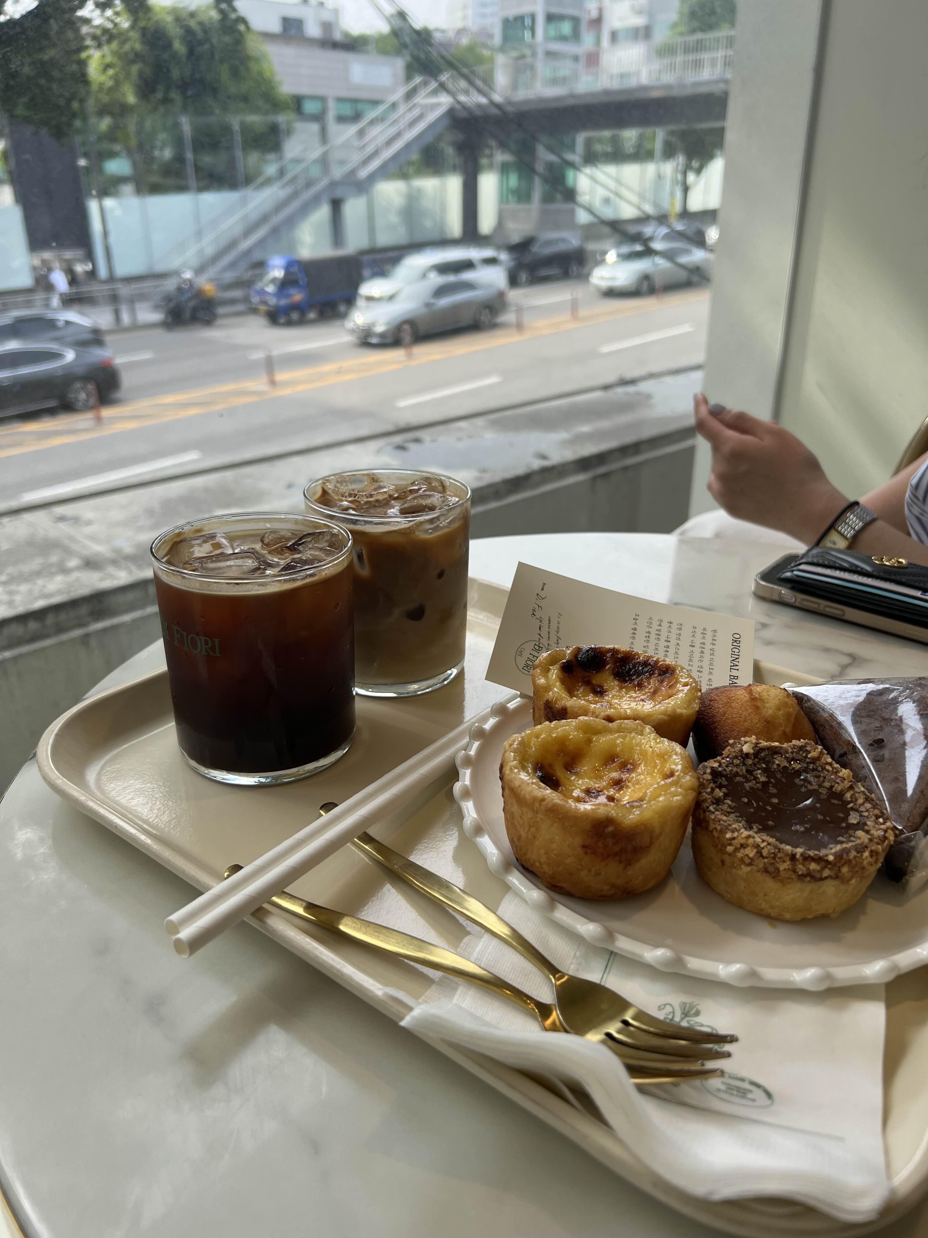 디피오리 용산의 한 가지 단점이 커피 양이 넘 적다 ㅜㅜㅜ 에그타르트랑 같이 아이스아메리카노 꿀꺽꿀꺽 마셔줘야 하는데 한 세 모금 마시니까 없어지던 내 커피...ㅠ 커피 좋아하시는 분들은 두 잔 시키셔야 할 듯 ☕️ 그치만 에그타르트는 진짜.. 부드럽고 커스터드, 바닐라 풍미가 엄청 진하고 계란의 고소함도 극대화된 맛이라 넘 만족스러웠다,, 바삭한 페이스트리는 말해모해 👍 다만 초코타르트, 초코 브라우니 등 초코 메뉴들은 내 취향이 아니었다!