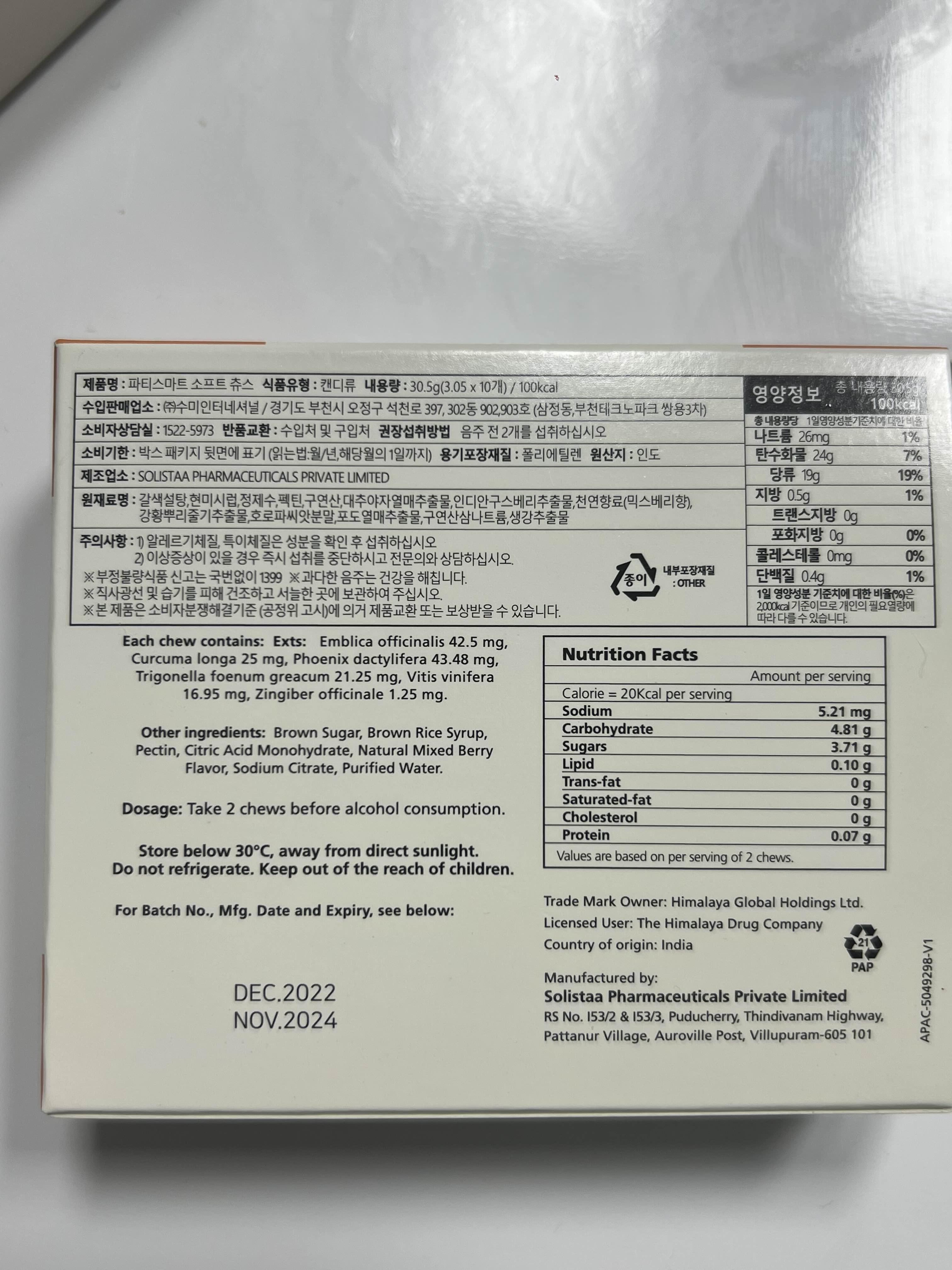 효과 좋은 숙취해소제 히말라야 파티스마트 츄 올리브영에서 구매 가능